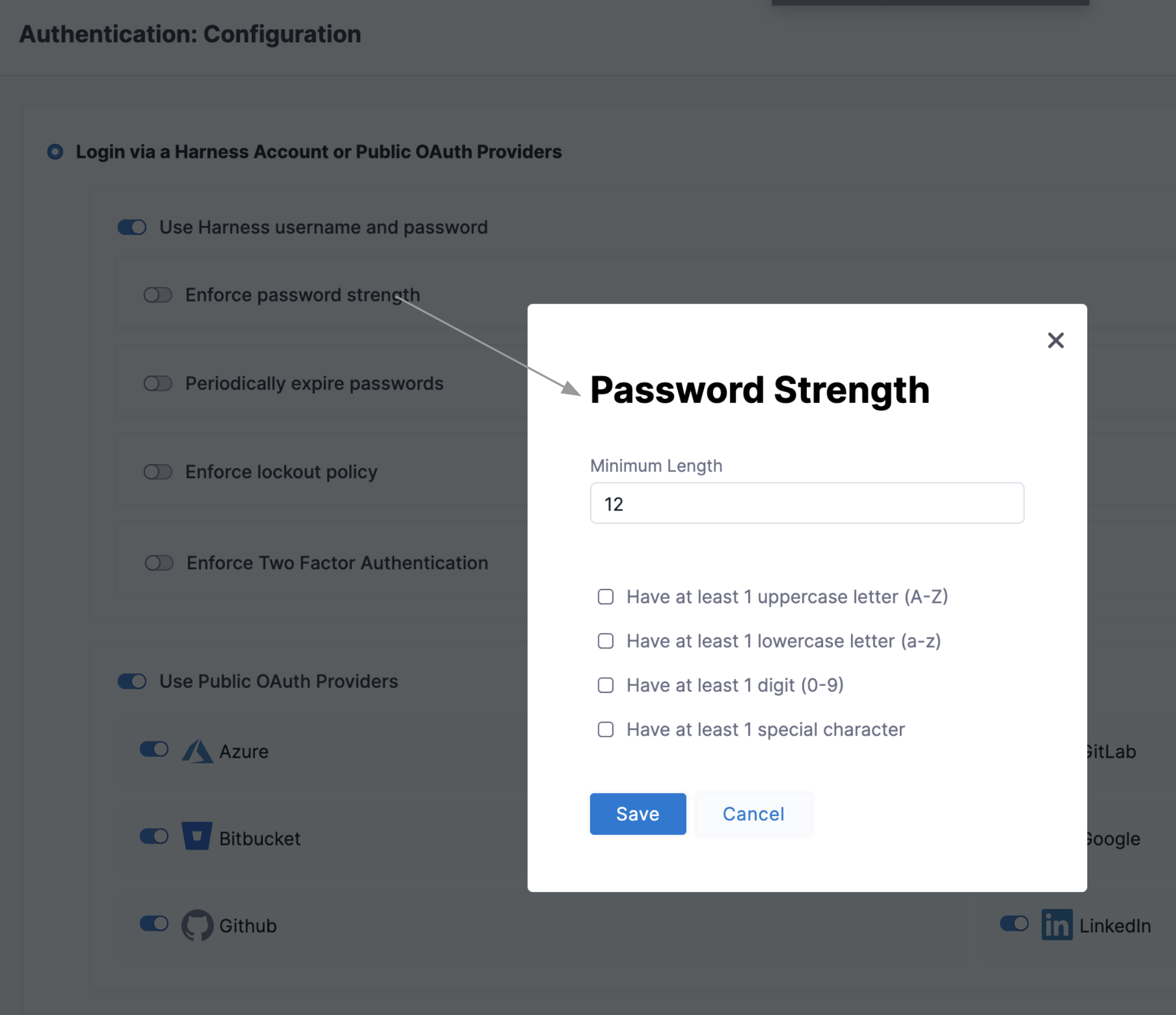 Select Enforce password strength to open the dialog shown below.
